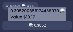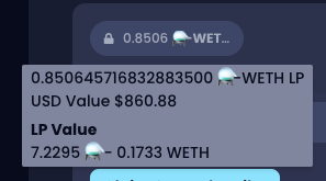 2. Locate the reward token you wish to view the value for and hover over (or tap on when using mobile) the  balance. A tooltip will appear showing you the balance of that LP token. <img src="https://3929406308-files.gitbook.io/~/files/v0/b/gitbook-legacy-files/o/assets%2F-Mg-2y9A5ib8UJscJmXU%2F-MgCay9CzFcqXBe_Nr6v%2F-MgCbfwXtT9gLoirnIGI%2FScreenshot%202021-08-03%20at%2021.05.10.png?alt=media&#x26;token=21954323-3059-435b-b6ce-1cf4429ad913" alt="" data-size="line">&#x20;