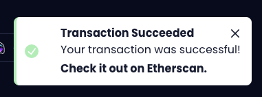 6. Your LP should now be submitted to be subscribed to the Crucible, you can view your transaction using either of the prompts that appear after your transaction has been submitted\