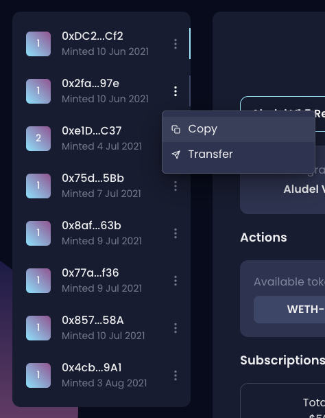 3. Click the "Transfer" option on the menu that has popped up\ <img src="https://3929406308-files.gitbook.io/~/files/v0/b/gitbook-legacy-files/o/assets%2F-Mg-2y9A5ib8UJscJmXU%2F-MgCHzqVYt3eYPRP8p0Y%2F-MgCL4zBO85KHkMlPGLH%2FScreenshot%202021-08-03%20at%2019.48.11.png?alt=media&#x26;token=4a1ed378-e7cc-46a0-8b65-fc878c8d90c7" alt="" data-size="original">&#x20;
